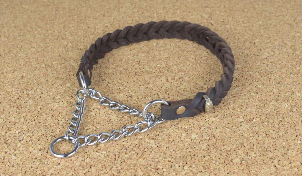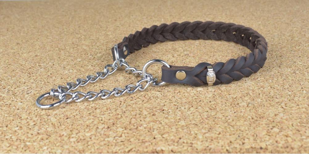 Geflochtene Halsbänder aus Fettleder mit Chromkette..