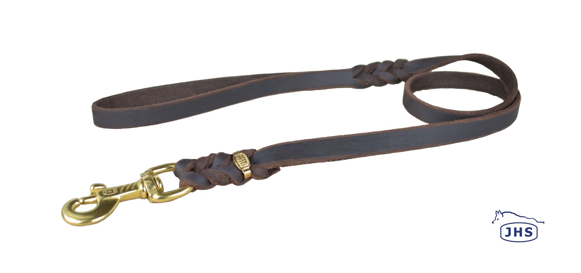 Fettlederleine aus Fettleder mit eingeflochtenem Karabinerhaken und Handschlaufe.