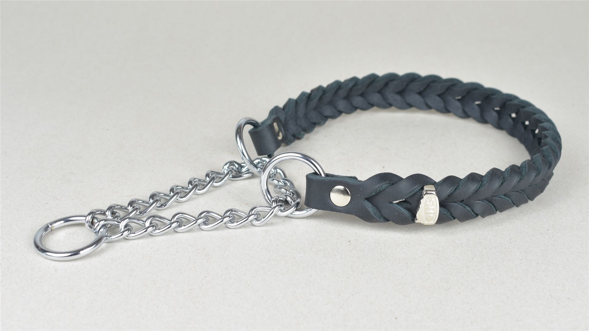 Geflochtene Halsbänder aus Fettleder mit Chromkette..