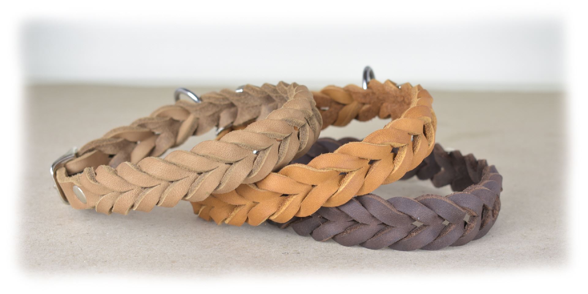 Handgeflochtenes Halsband aus Fettleder. Junior, Hundehalsband, JHS, Hundebedarf, fettleder, geflochten