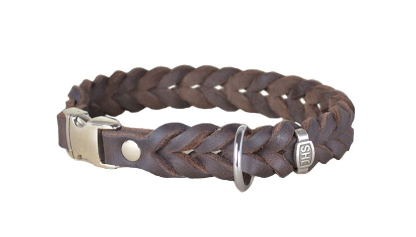 Geflochtene Halsbänder mit Klick, aus Fettleder.